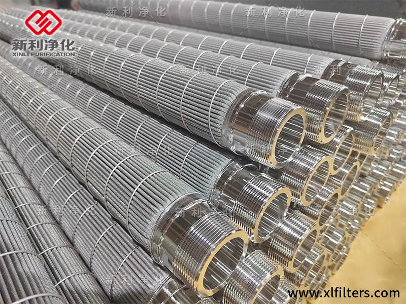 折波狀燒結氈濾芯主濾材是不銹鋼纖維燒結氈。以不銹鋼纖維燒結氈作為核心過濾層,不銹鋼纖維燒結氈是由金屬纖維絲燒結而成,而金屬纖維絲是多金屬線合成束后,同時拉伸至可用的纖維直徑,然后采用同重量和標準的直徑將其集束成絲,切斷,利用合適的方法制成蓬松氈,而燒結氈則是把幾種不同直徑的蓬松氈依次排列在一起,形成一定厚度的堆積纖維,纖維之間相互交叉成三維孔隙,之后經高溫真空燒結再碾壓至成品燒結氈。
